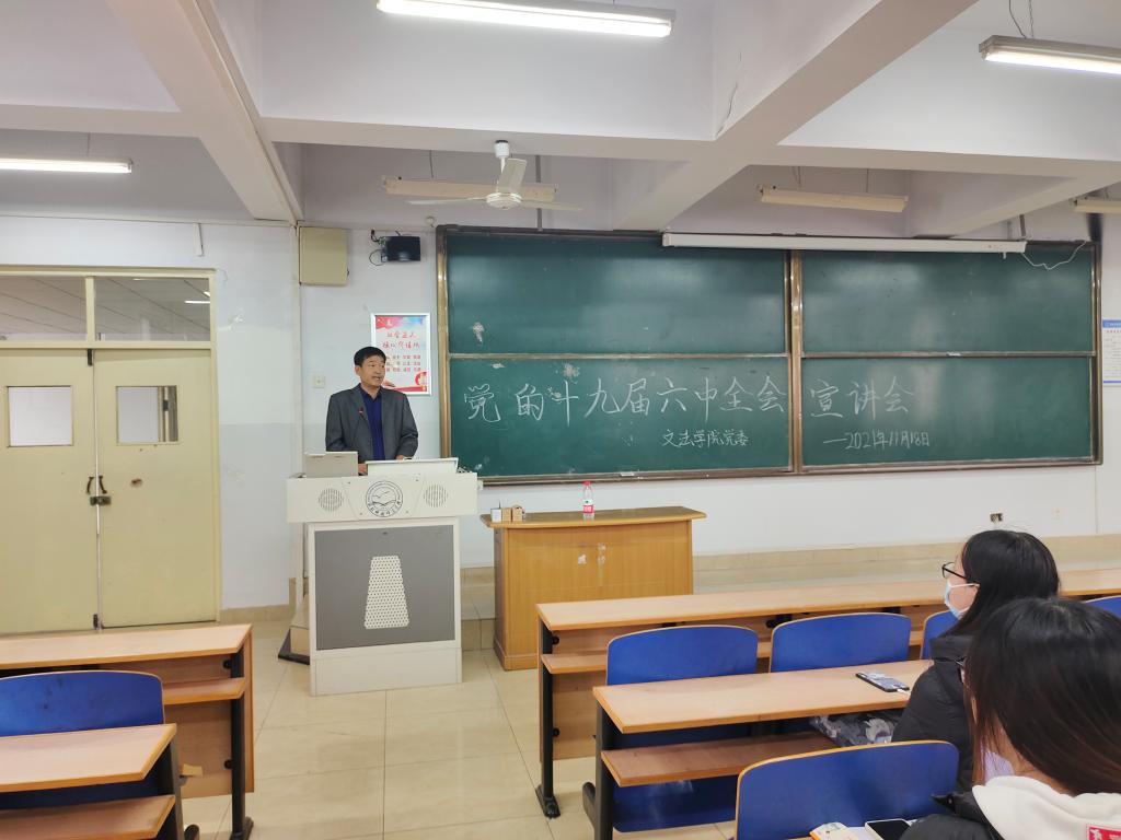 11月18日下午,永利yl23411组织召开党的十九届六中全会精神宣讲会,党委书记郝东主持宣讲活动,全体党员通过线上、线下两种方式参加了学习活动。