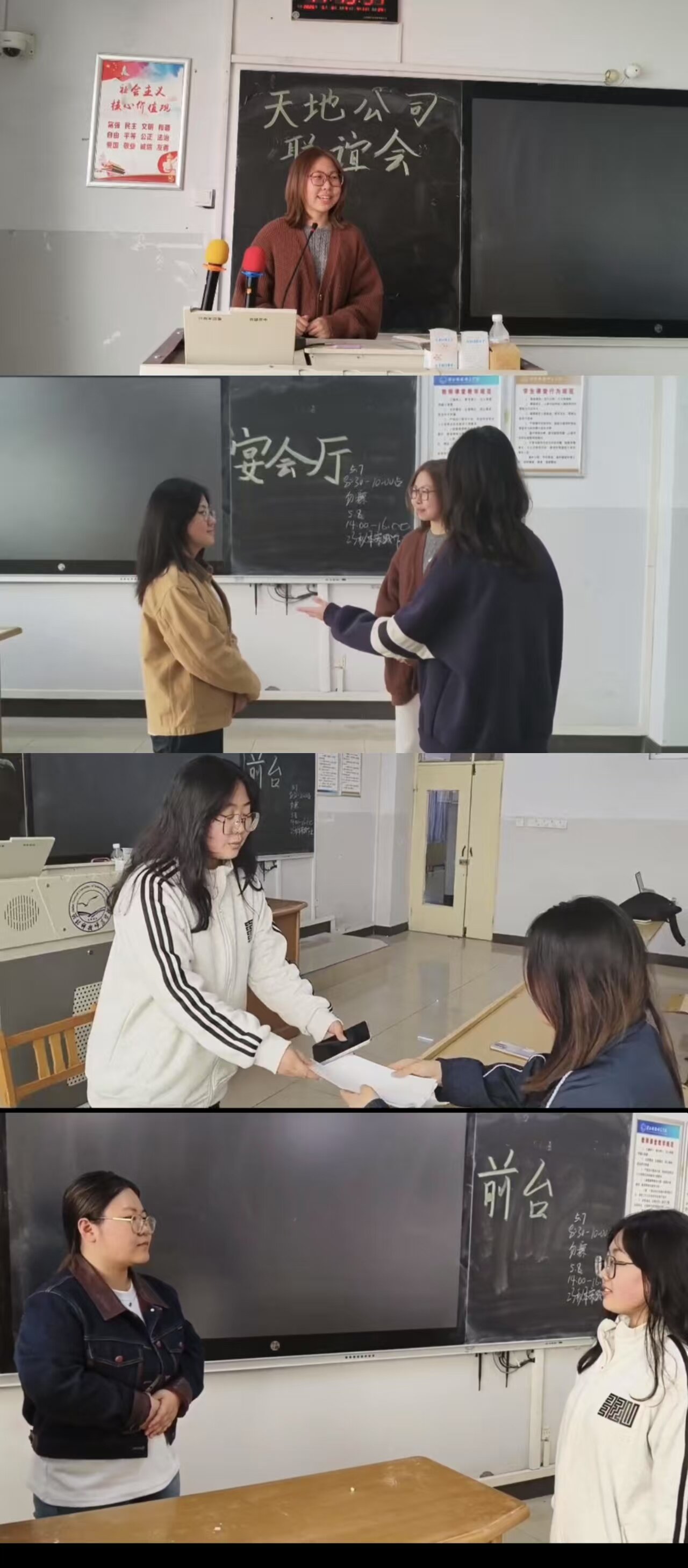 在演练过程中,同学们严格按照所学的礼仪规范进行操作,从见面时的握手、介绍,到引导客户入座、奉茶,再到会议中的座次安排、文件传递等细节,都力求做到精准、规范。每完成一个场景模拟,郑老师都会进行详细点评,指出存在的问题并给予针对性的建议,帮助同学们不断改进。演练结束后,团支部组织了交流分享会,同学们纷纷踊跃发言,分享自己在活动中的收获和体会。