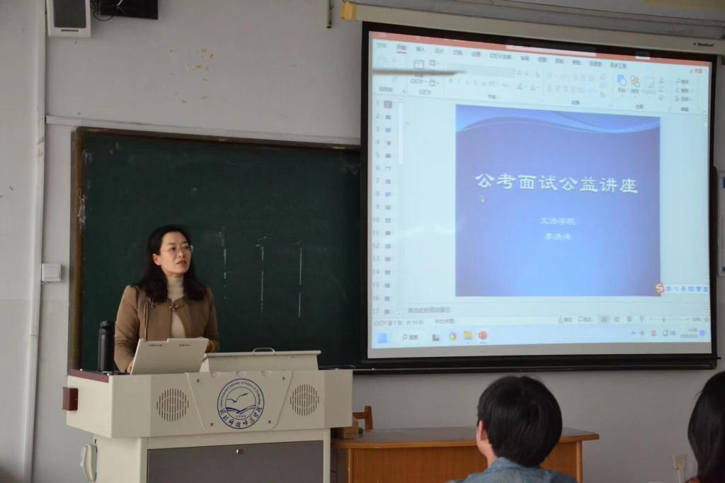 主讲李洪洋老师首先对进入面试的同学们表示祝贺,并阐明面试在公考中的重要性,提醒同学们将面对更激烈的竞争。讲座中,李老师以丰富的经验和风趣幽默的话语,形象生动地模拟了公考面试的全过程。并讲述了公考面试的标准、高效备考方法、备考过程中的误区。最后,李老师从真题入手,为大家讲授面试答题思维方式,针对不同题目的解题技巧,提升同学们的面试能力。