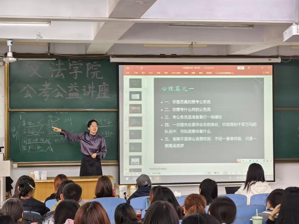 本次讲座举办圆满成功,既有利于帮助大一、大二员工对他们的未来制定更加详尽的学业规划,增强学习针对性,避免虚度光阴,又为大三、大四同学提供了公考信息服务,使他们摆托迷茫,设定目标,掌握备考方法。相信在这场讲座的启发下,同学们将更加坚定自己的信念,努力备考,为实现自己的公职梦想而奋斗,为国家和人民贡献自己的力量。(撰稿:刘艾嘉)