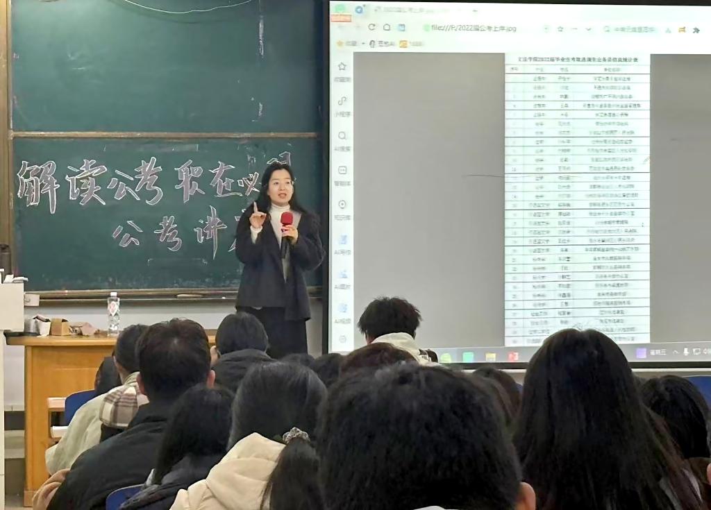 为了提升同学们对公考的了解,帮助同学们走出公考的困境,增强对公考的信心。永利yl23411于2025年10月24日在综合楼412教室开展“解读公考,职在必得”主题讲座。