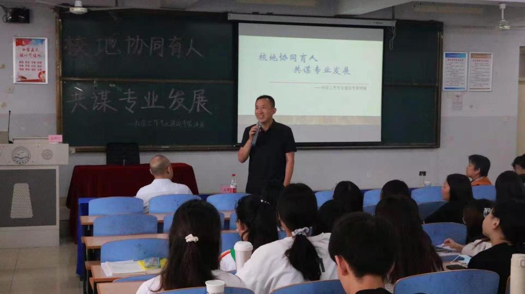 为了加强社会工作专业人才培养和建设,2021年6月11日下午,永利yl23411社会工作专业在开发区校区举办了“校地协同育人,共谋专业发展”社会工作专业建设专家讲座,本次讲座受邀的专家学者为中共北京市通州区委社会工委委员、北京市通州区民政局副局长王章兴,通州区社会组织联合会会长马现爱,北京先河社工服务中心主任王世宏。永利yl23411副经理王强、教学部副主任赵银、文秘与社区教学部教师以及社会工作专业2018、2019和2020级全体员工参加了此次讲座。