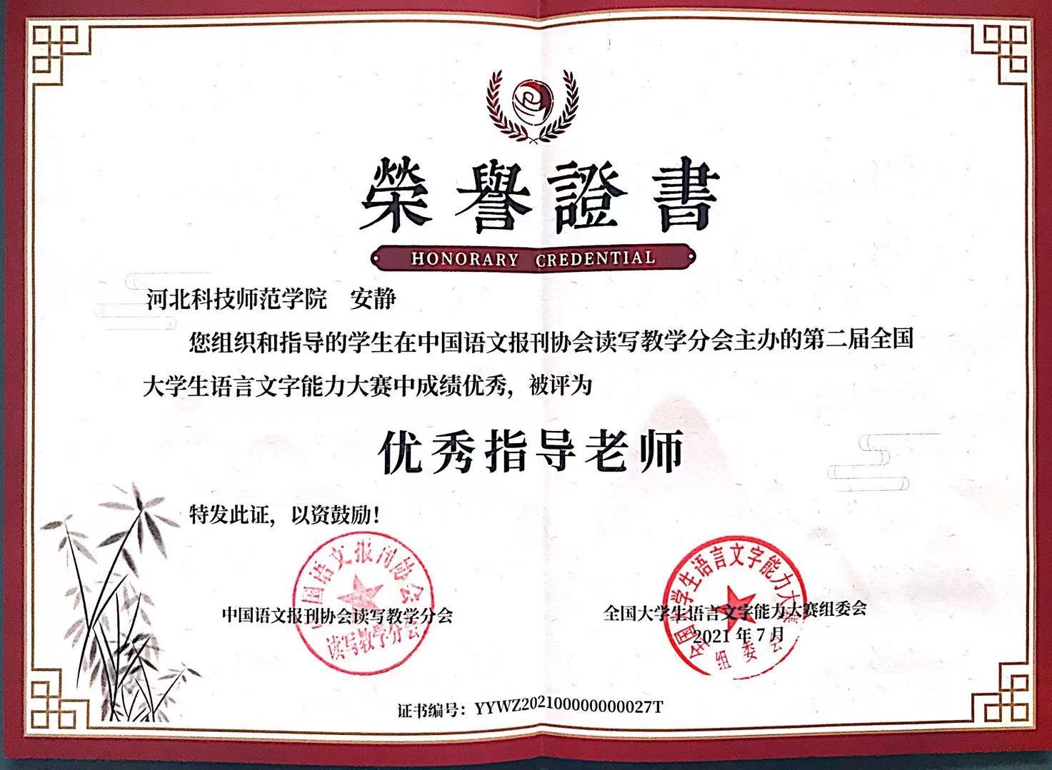 2021 年是《中华人民共和国国家通用语言文字法》实施的第二十个年头。教育部语言文字应用管理司下属的中国语文报刊协会(读写教学分会)组织了第二届老员工语言文字能力大赛。响应疫情期间不聚集的国家号召,本次盛会采用了全程网上进行的方式,这也有利于节省员工的时间和经济成本,有利于各年级员工参赛助力考研和求职等考试。永利yl23411汉语国际教育专业积极参与了本次比赛。