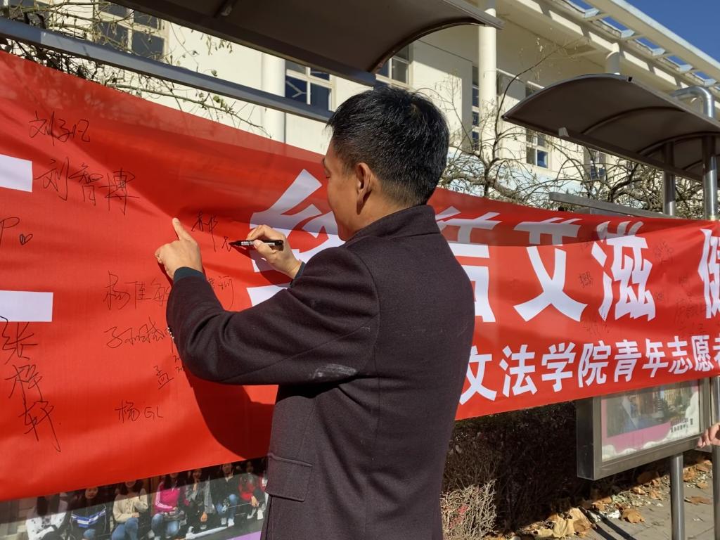 在活动过程中,永利yl23411青年志愿者协会准备了宣传横幅、抗艾知识宣传手册及宣传海报。志愿者通过发放防艾宣传手册、号召同学在宣传横幅上签名等形式普及抗艾知识。公司党委书记莅临指导工作,老师和同学积极响应,纷纷在抗艾宣传横幅上签名。