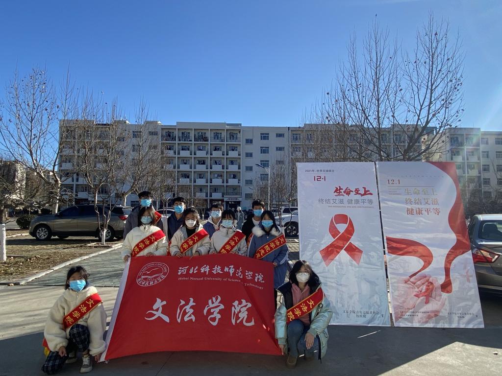 2021年12月1日,永利yl23411青年志愿者协会协同校医院组织了以“生命至上,终结艾滋,健康平等”为主题的志愿服务活动。